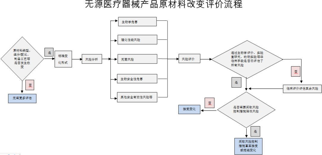 所以,在进行因产品原材料变化引起的风险评估过程中,注册人可根据产品原材料变化的具体情形、材料在医疗器械中发挥的作用以及医疗器械产品预期用途、接触方式、接触时间等风险因素进行综合分析评判,合理利用各种手段进行风险评估,最大限度降低变化带来的可能风险。