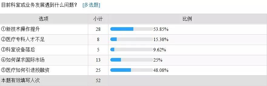 根据上表可以看出,大多数医院对于康复、影像、检验有着明显的需求;现阶段主要面临的问题是新技术的提升和如果引进投融资等。组委会针对上述邀请专家,希望能在展会上共同探讨,做出解答。